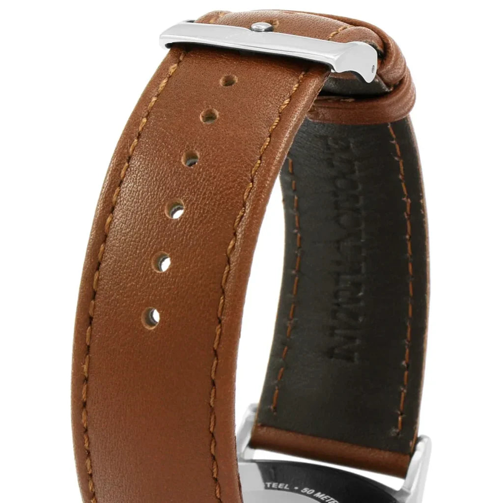 بلون فضي و استيك جلد بلون بني