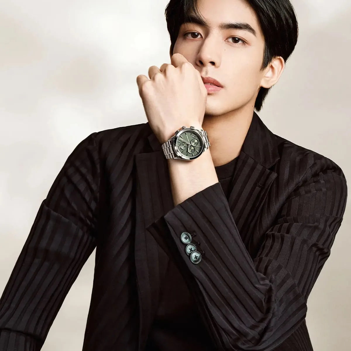 بلون اخضر و استيك معدن بلون فضي