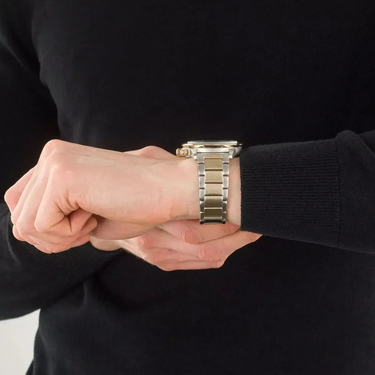 بلون اسود و استيك معدن بلون فضي و اسود