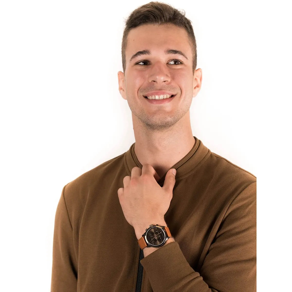 بلون بني و استيك جلد طبيعي بلون بني