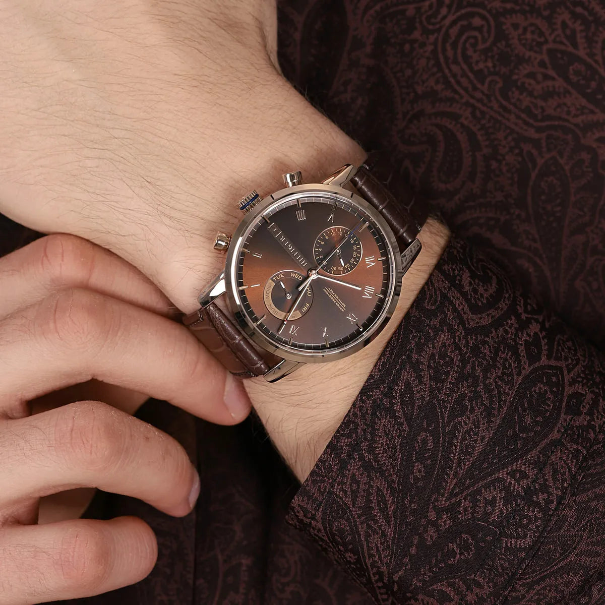بلون بني و استيك جلد طبيعي بلون بني