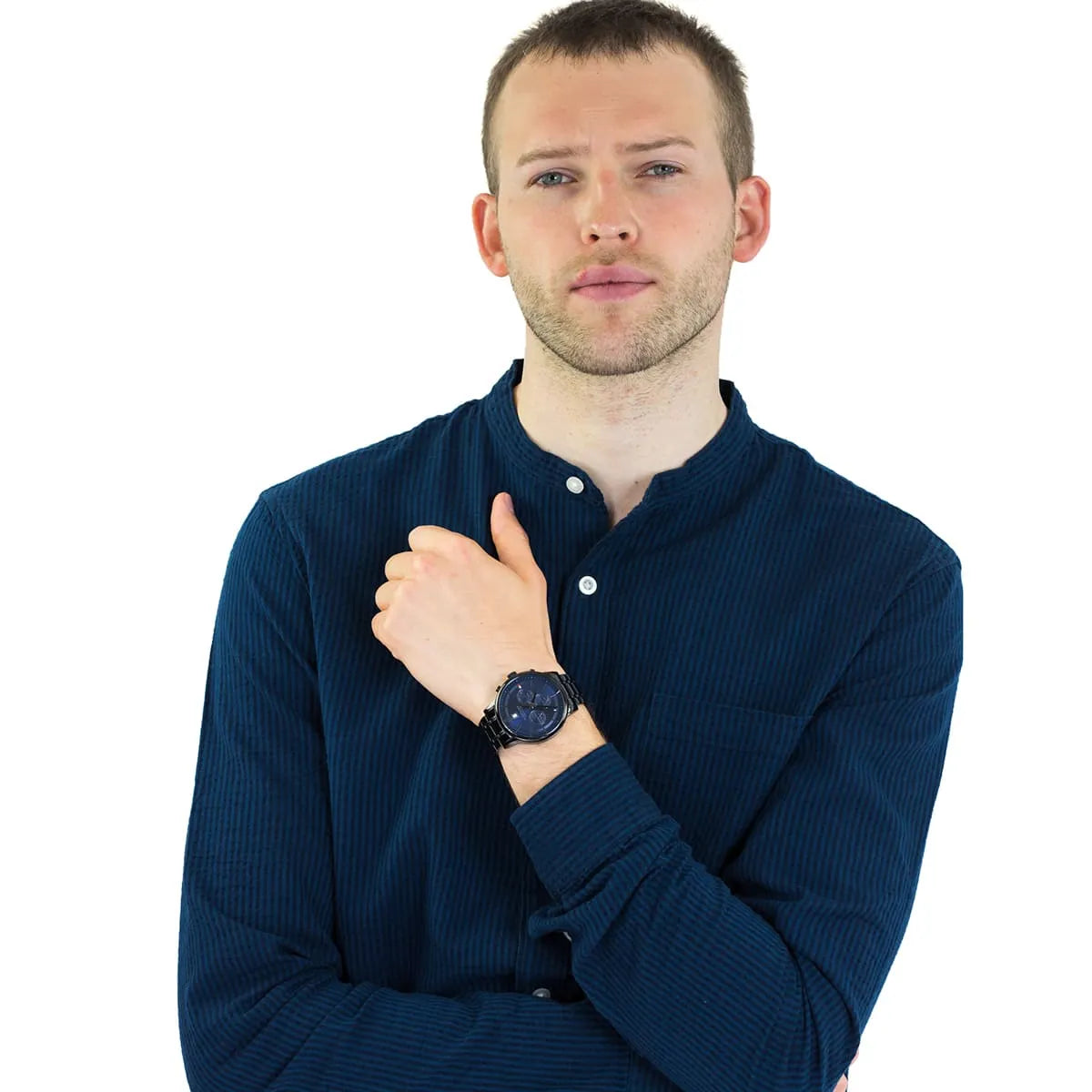 بلون ازرق و استيك معدن ستانلس ستيل بلون اسود