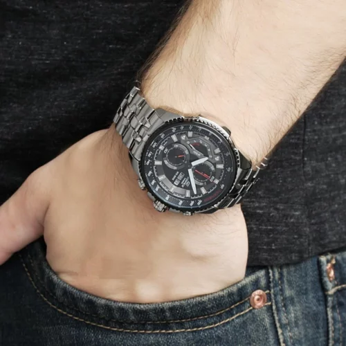 ساعة كاسيو اديفيس للرجال (ميرور اوريجنال) EF-558D-1AV لون اسود واستيك معدن ستانلس لون فضي.