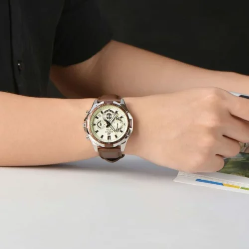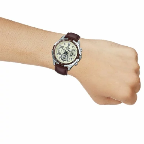 ساعة كاسيو اديفيس للرجال (ميرور اوريجينال) EFR-554L-7AV لون ابيض واستيك جلد طبيعي لون بني.