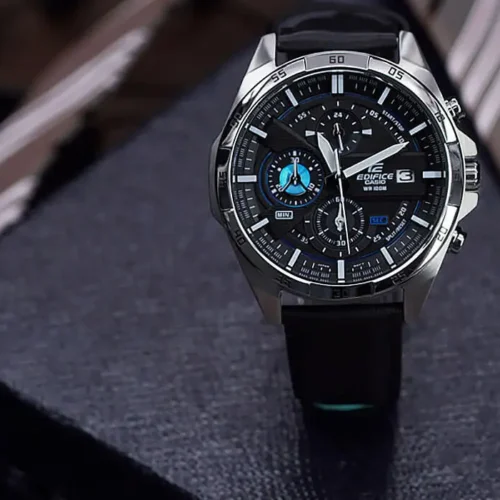 ساعة كاسيو اديفيس للرجال (ميرور اوريجنال) موديل EFR-556L-1AVUEF لون اسود واستيك جلد طبيعي لون اسود.