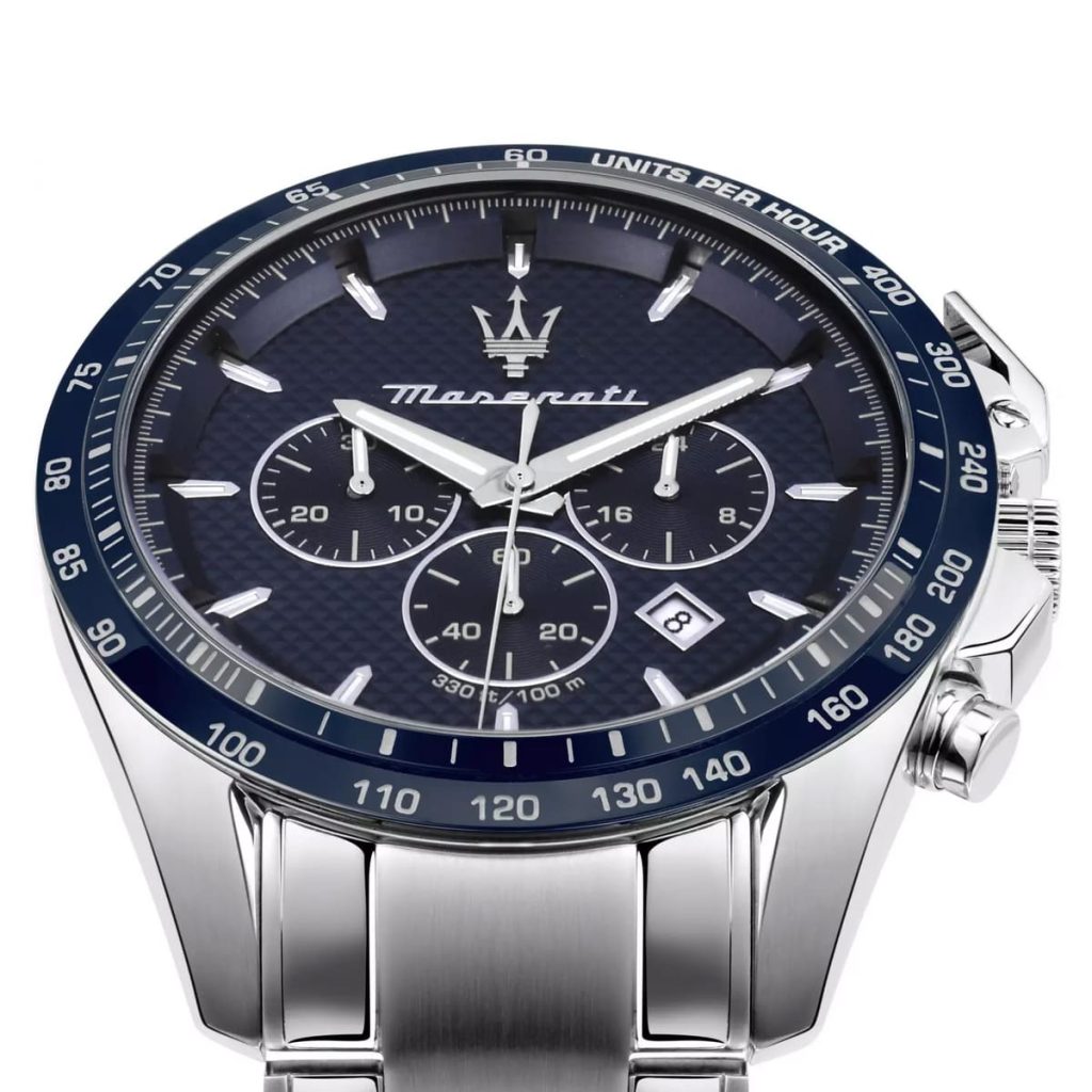 ساعة مازيراتي رجالي أصلية موديل (تراجواردو) R8873612043 Traguardo بلون ازرق و استيك معدن ستانلس ستيل بلون فضي