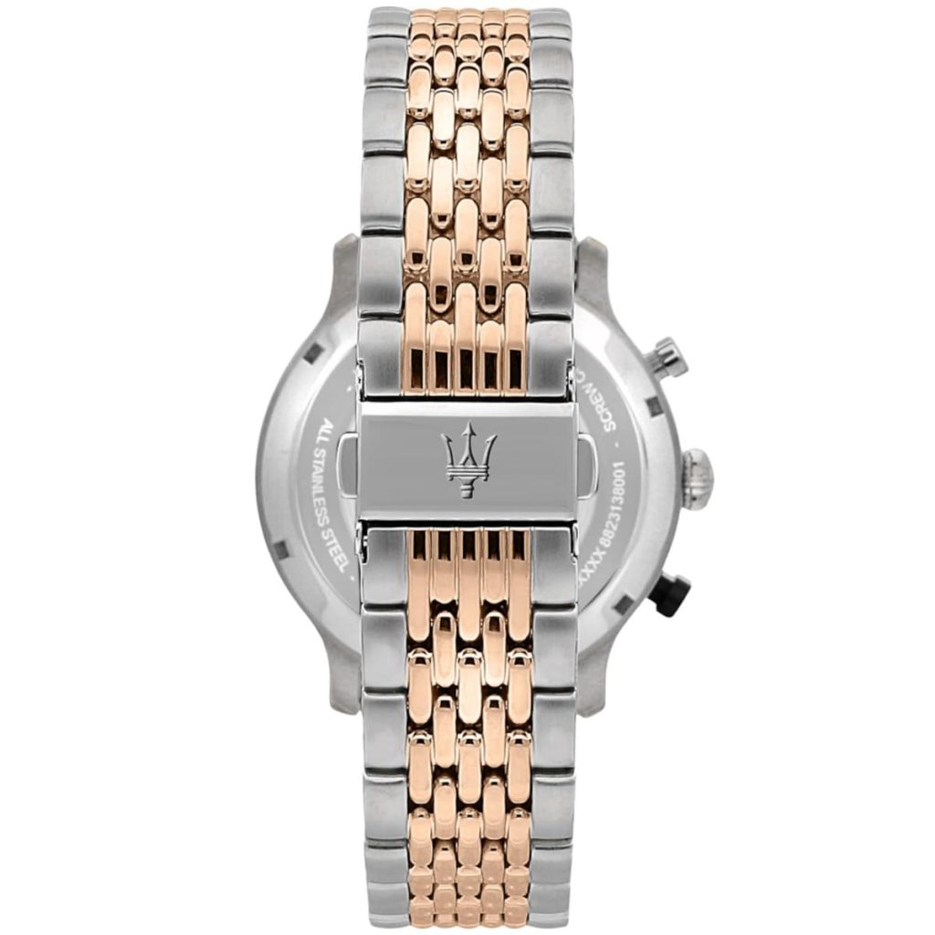 ساعة مازيراتي رجالي أصلية موديل (ليجند) R8873638002 Legend بلون ابيض و استيك معدن ستانلس ستيل بلون فضي و نحاسي