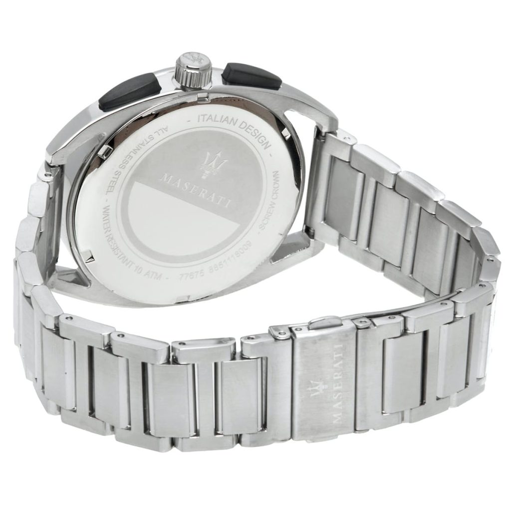 ساعة مازيراتي رجالي أصلية موديل (تريمارانو) R8873632003 Trimarano بلون اسود و استيك معدن ستانلس ستيل بلون فضي