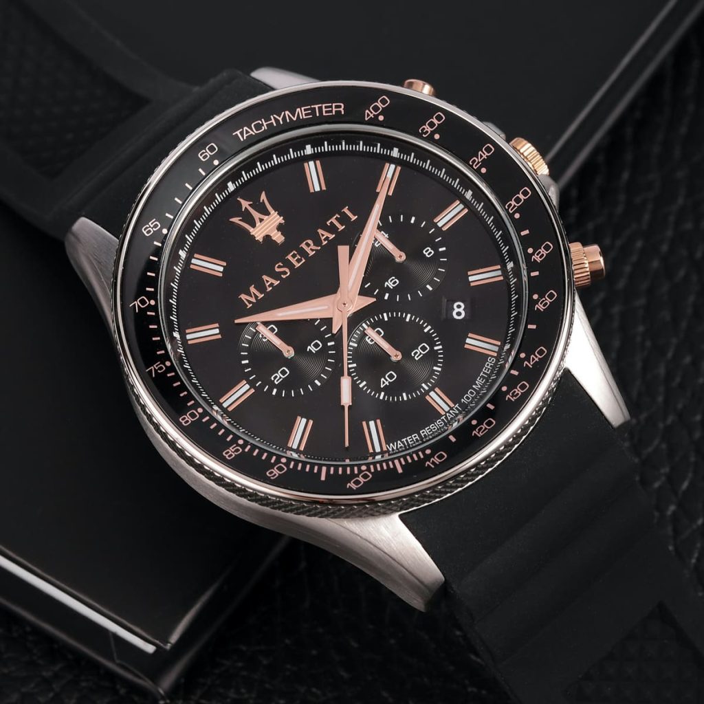 ساعة مازيراتي رجالي أصلية موديل (سفيدا) R8871640002 Sfida بلون اسود و استيك مطاط بلون اسود