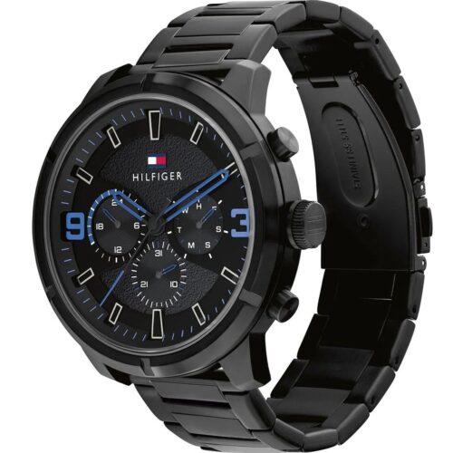 ساعة Tommy Hilfiger 1792070 (Wild) للرجال، بتصميم رياضي أنيق بالكامل أسود: