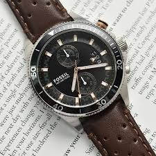 ساعة أنيقة من مجموعة Wakefield، بميناء أسود سعة 45 مم وحزام جلد بنِّي، حركة كوارتز مع مؤقت كرونوغراف ومقاومة للماء حتى 100 متر تقريبًا.