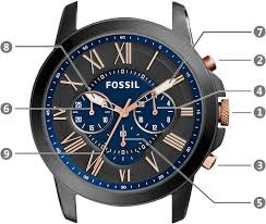 ساعة أنيقة من مجموعة «Grant» بحزام جلد أزرق، علبة من الستانلس ستيل مطلي باللون الأسود، مينا أزرق-أسود، قطر 44 مم، حركة كوارتز كرونوغراف، مقاومة للماء حتى 50 متر تقريباً