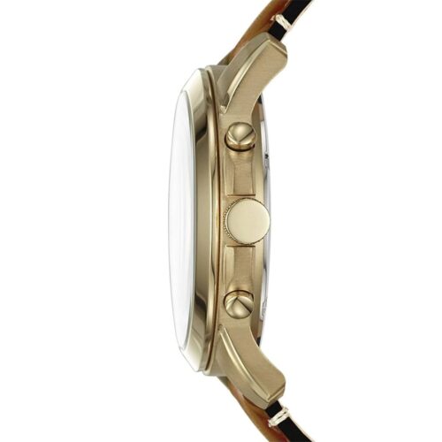 ساعة من مجموعة Grant Sport بحجم علبة تقريبياً 44 مم، تعمل بحركة كوارتز كرونوغراف، اللون الأزرق للميناء مع سوار جلد بني أنيق، مقاومة للماء حتى 5 ATM.