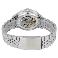 ساعة من مجموعة Townsman بقطر 44 مم، بعيار تلقائي يظهر بعض الحركة عبر الميناء الهيكلي، وهيكل وسوار من الفولاذ المقاوم للصدأ بلون فضي — خيار راقٍ للبس اليومي أو الإطلالات الذكية.