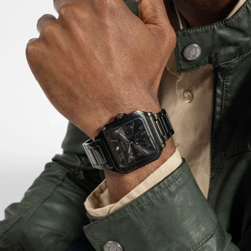 ساعة رجالي أنيقة من جيس بتصميم عصري يجمع بين الفخامة والشكل الرياضي، وبتدي حضور مميز على الإيد.
