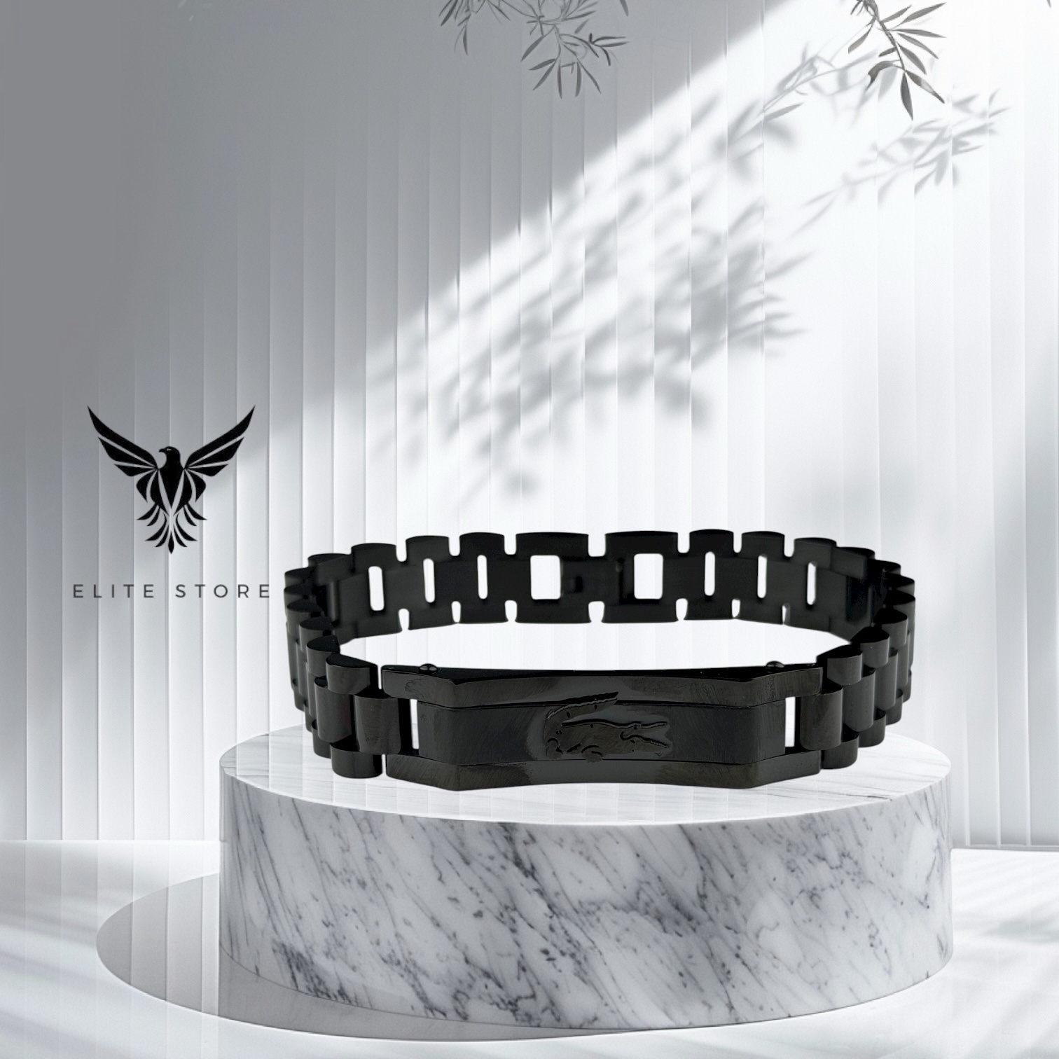 بيرسلت لاكوست بلون أسود أنيق، مصنوعة من ستانلس ستيل عالي الجودة مقاوم للماء والعرق.