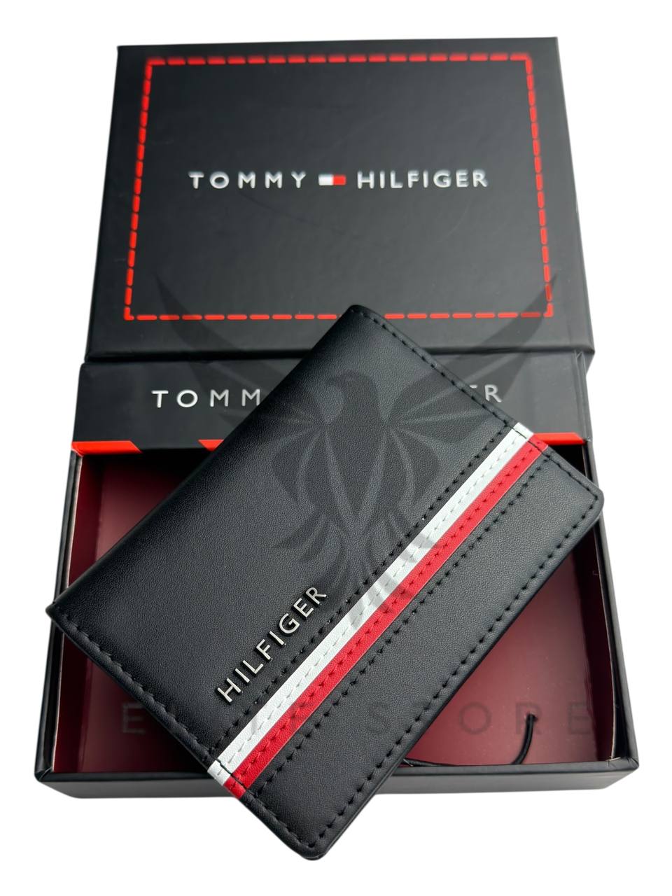 محفظة رجالي باللون الأسود مع شريط تومي رفيع يضيف لمسة راقية وعصرية في نفس الوقت. تصميم عملي وخفيف يناسب الاستخدام اليومي ويكمل أي ستايل رجالي بشكل أنيق.