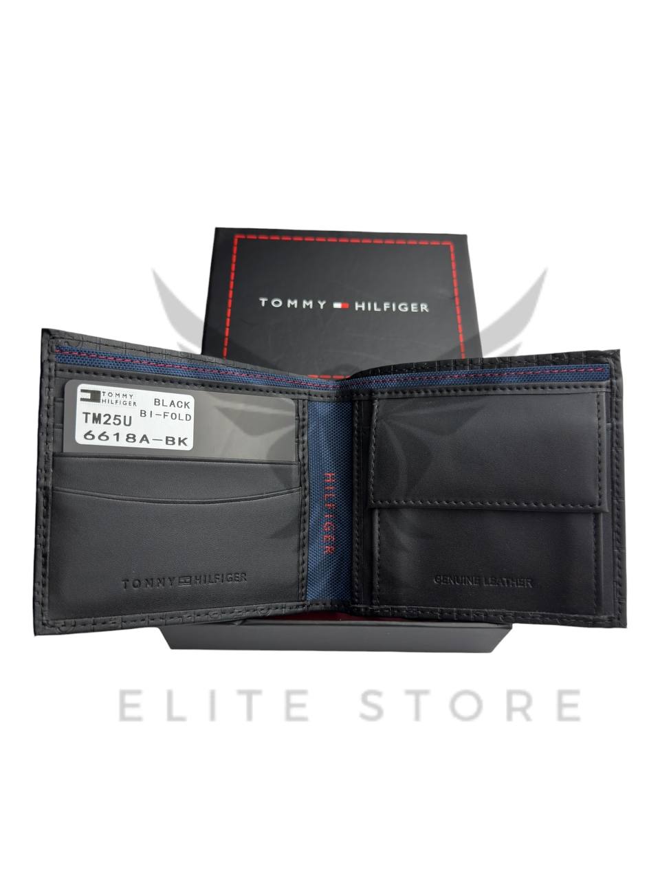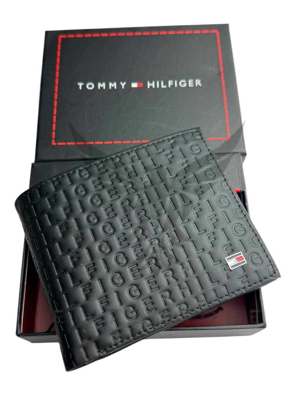 محفظة رجالي باللون الأسود مع نقوشات تومي المميزة تضيف لمسة فخامة وابتكار في التفاصيل.