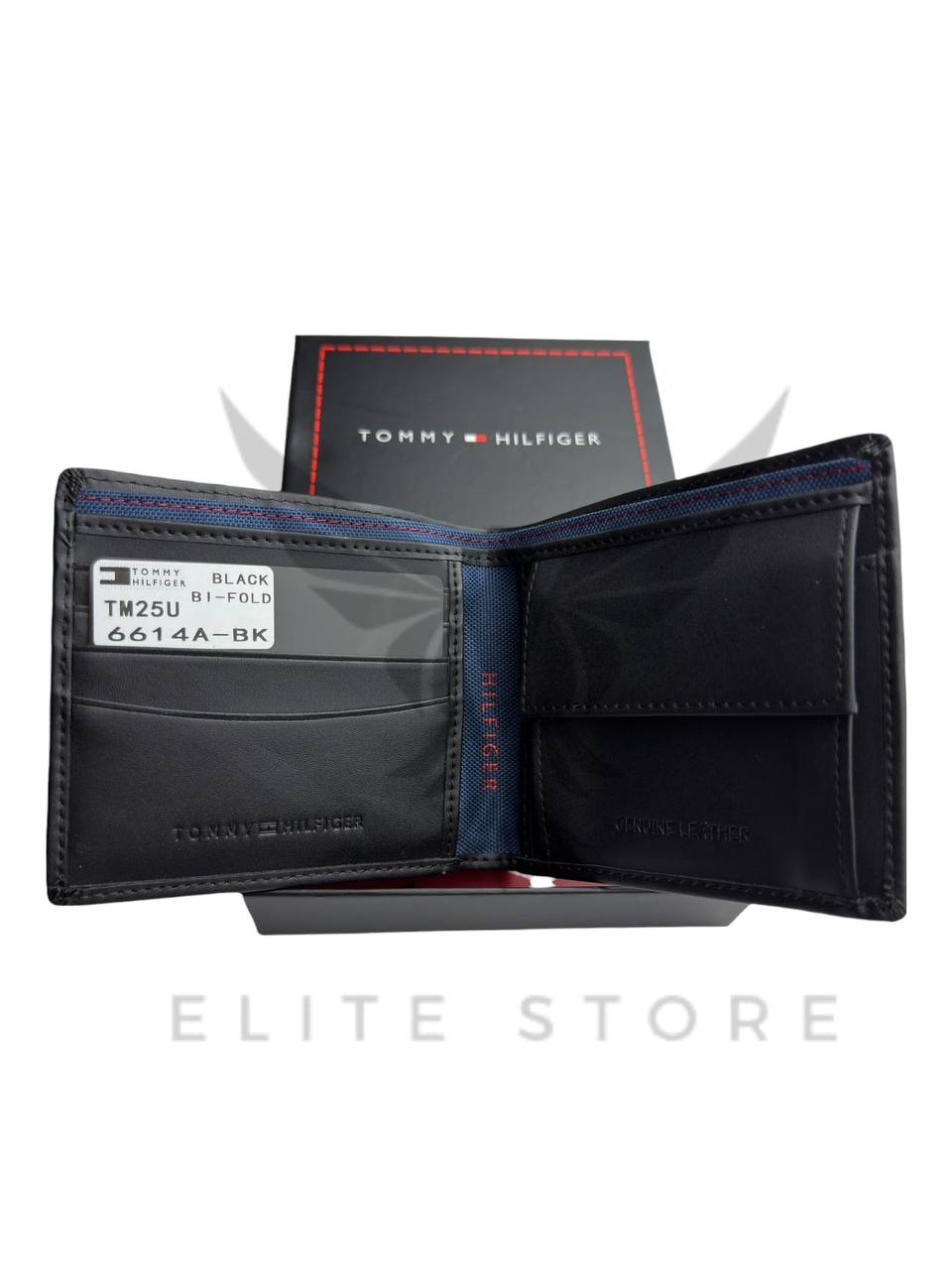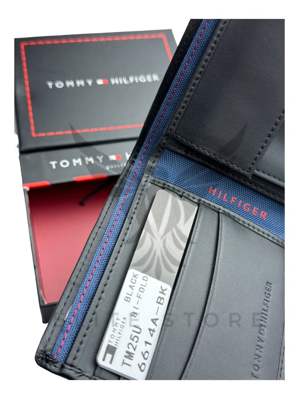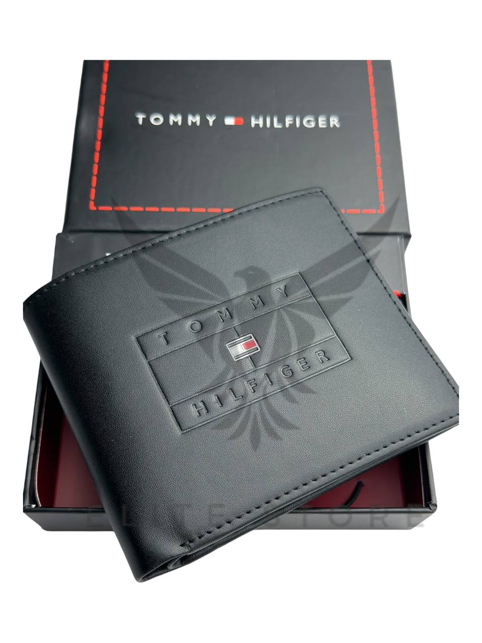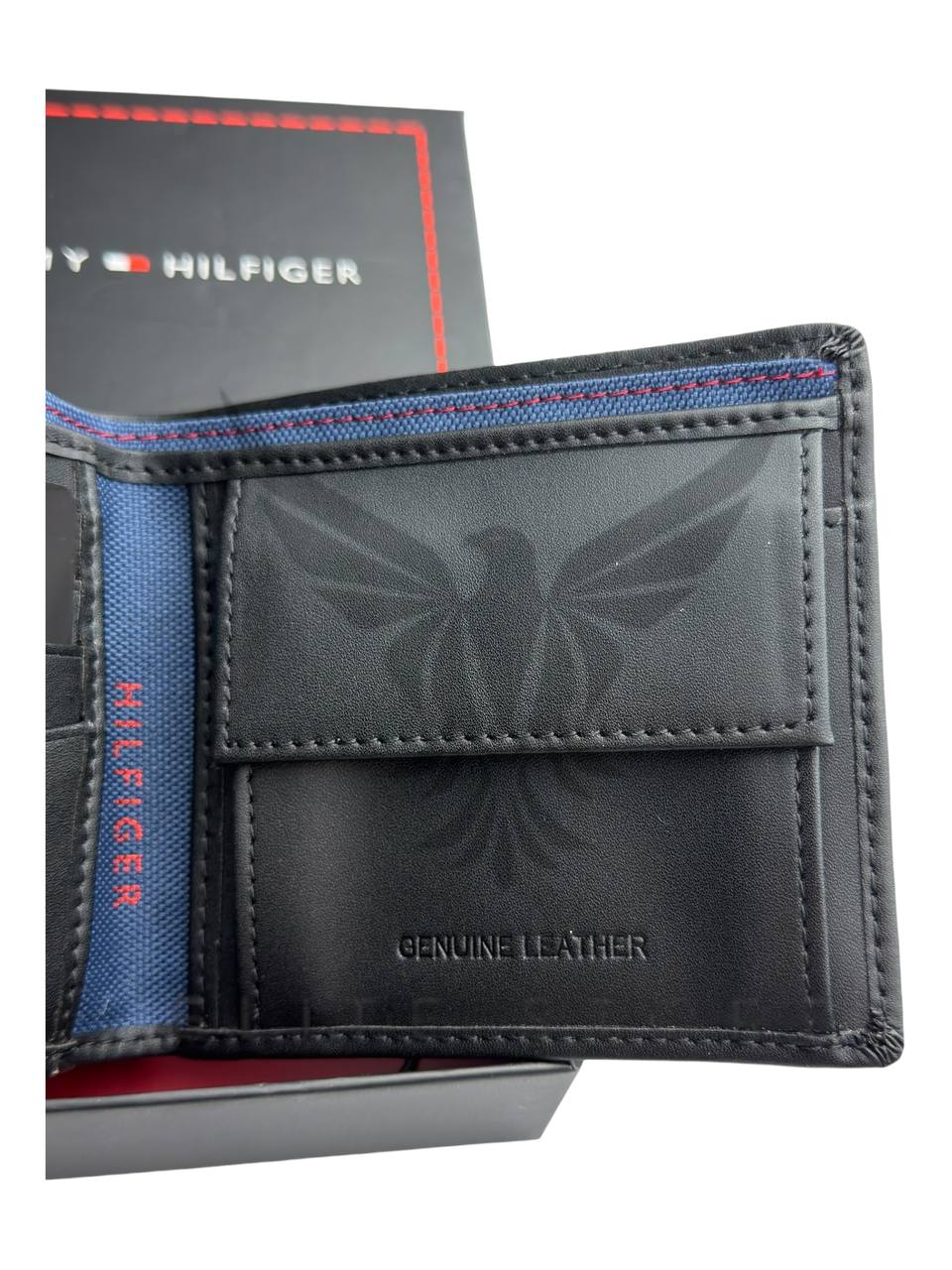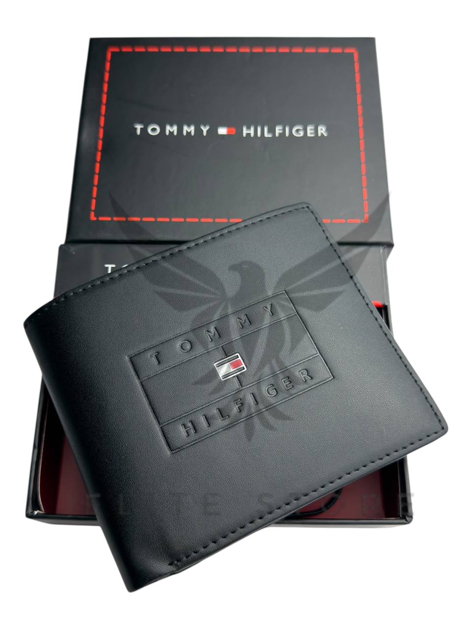 محفظة رجالي باللون الأسود مع نقشة تومي المميزة تضيف لمسة فخامة وابتكار في التصميم.