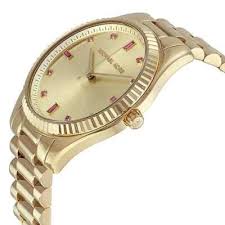 ساعة مايكل كورس MK3246 من مجموعة Blake، بتصميم أنيق من الستانلس ستيل مطلي باللون الذهبي، بميناء ذهبي مزدان ببلورات لامعة لإضفاء لمسة فاخرة وعصرية. هذه الساعة تعمل بحركة كوارتز دقيقة ومقاومة ماء حتى 5 ATM، ما يجعلها مثالية للاستخدام اليومي والطلعات الخاصة.