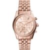 ساعة مايكل كورس Lexington Chronograph MK5569 بتصميم رومانسي أنيق من الستانلس ستيل المطلي بـ الروز جولد، وميناء بنفس اللون مع ثلاث عدّادات كرونوغراف وأرقام رومانية لأسلوب كلاسيكي. قطر العلبة حوالي 38 مم، وتعمل بحركة كوارتز، مع مقاومة ماء تصل إلى 100 متر / 10 ATM.