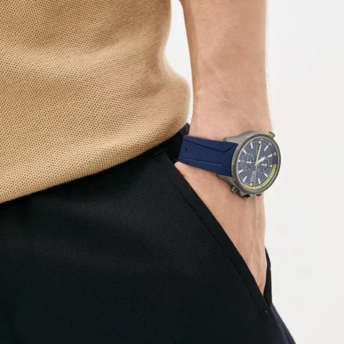 ساعة أنيقة من ماركة Hugo Boss، موديل 1513821، مصمّمة للرجال وتأتي بواجهة زرقاء جذّابة وسوار مطّاطي سيليكون باللون الأزرق. الساعة بقطر حوالي 46 مم وسمك تقريباً 12 مم، ومقاومة للماء حتى حوالي 100 متر. وتأتي مع العلبة الأصلية، والشنطة الأصلية، والسيريال نمبر، والضمان — حزمة كاملة تضمن لك الأصالة والثقة. تصميمها العصري الجريء يجعلها خياراً رائعاً لمن يرغب في مظهر مميز مع لمسة رياضية راقية.