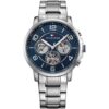 هذه الساعة الأنيقة من ماركة تومي هيلفيغر، موديل 1791293، مصمّمة للرجال وتأتي بقرص أزرق مميّز وسوار معدني من الفولاذ المقاوم للصدأ باللون الفضي، بقطر حوالي 44 ملم تقريباً. الساعة تعمل بحركة كوارتز وتتمتع بخاصية مقاومة الماء حتى 50 متر تقريباً. تأتي مع العلبة الأصلية، والشنطة الأصلية، والسيريال نمبر، والضمان — حزمة متكاملة تُوفّر لك الأصالة والثقة. تصميمها الكلاسيكي والعصري يجعلها خياراً رائعاً لإطلالة يومية أنيقة أو لمناسبة خاصة.