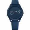 ساعة رجاليّة أنيقة من ماركة Tommy Hilfiger، موديل 1791325 (سلسلة Denim) — تأتي بقرص أزرق جذّاب وسوار مطاطي (أو سيليكون) باللون الأزرق. القطر حوالي 44 مم تقريباً، ويُذكر أنّها مقاومة للماء حتى 30 متر تقريباً.
