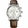 ساعة رجالية أنيقة من ماركة Tommy Hilfiger، موديل 1791400 (سلسلة Kane)، تأتي بقرص أبيض نقي وسوار جلد بني طبيعي، مع علبة من الفولاذ المقاوم للصدأ بقطر حوالي 44 مم تقريبًا. الحركة من نوع كوارتز، وسوار بعرض حوالي 22 مم، ومقاومة للماء حتى نحو 30 متر تقريبًا. تأتي الساعة مع العلبة الأصلية، والشنطة الأصلية، والسيريال نمبر، والضمان — حزمة كاملة تضمن لك الأصالة والموثوقية.