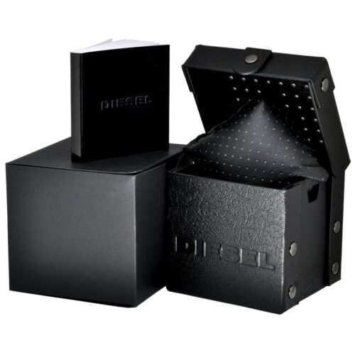 ساعة رجالية من ماركة Diesel، موديل DZ4309 (سلسلة Mega Chief)، تأتي بعلبة من الفولاذ المقاوم للصدأ بلون أسود مع تفاصيل مطلية باللون الوردي الذهبي (rose gold-tone) على الميناء. القطر تقريباً 59 مم حسب إحدى البيانات.
