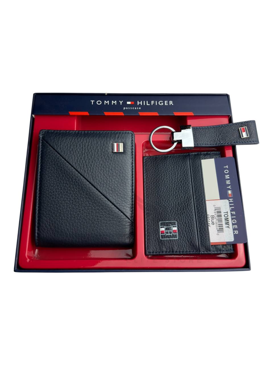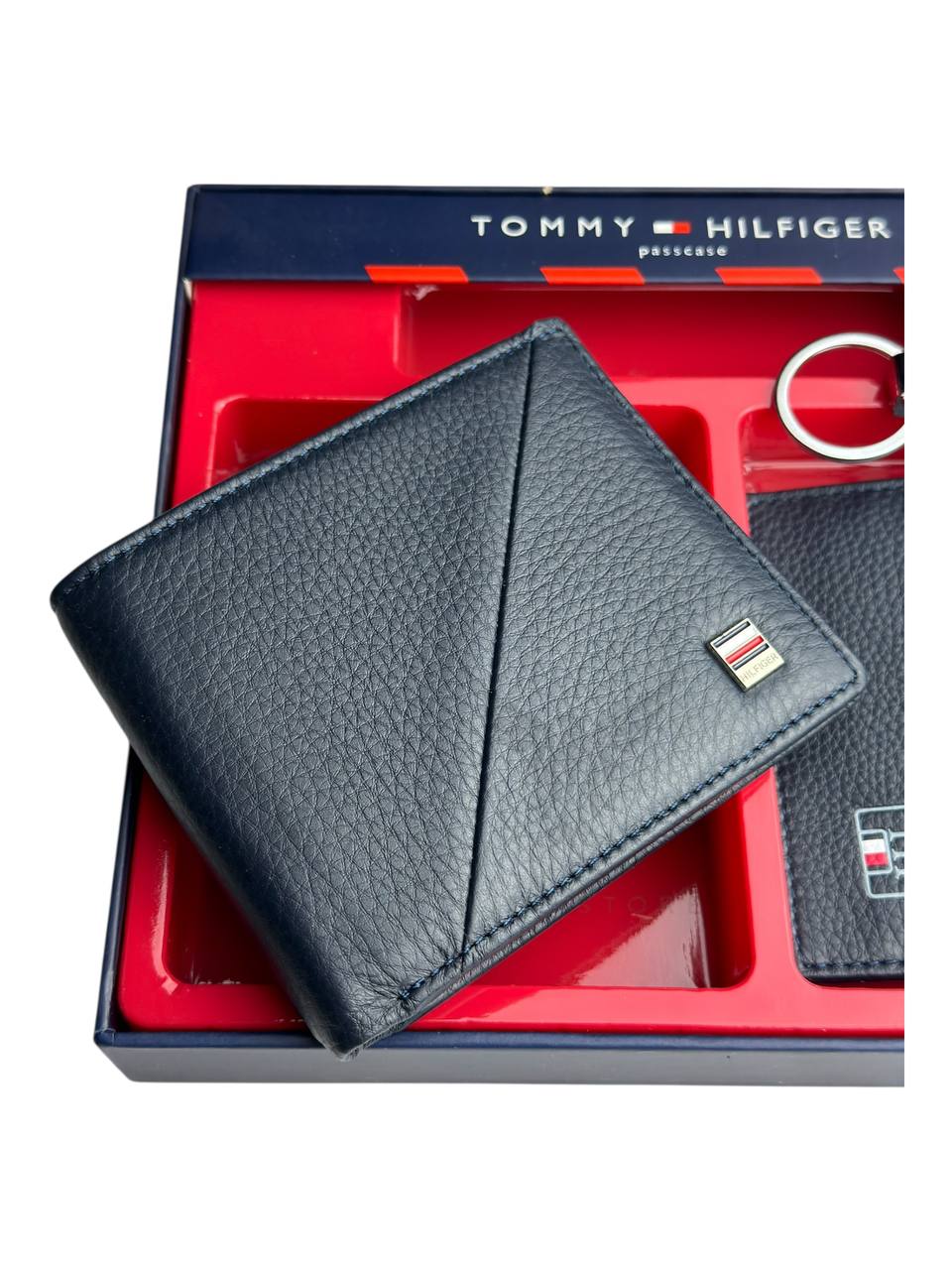 طقم أنيق من تومي هيلفيغر يضم محفظتين رجالي وميدالية مفاتيح بتصميم عملي وشيك يناسب كل الاستخدامات.خامة ممتازة وتشطيب Mirror Original يدي إحساس بالفخامة ويخليه اختيار مثالي ليك أو كهدية مميزة.